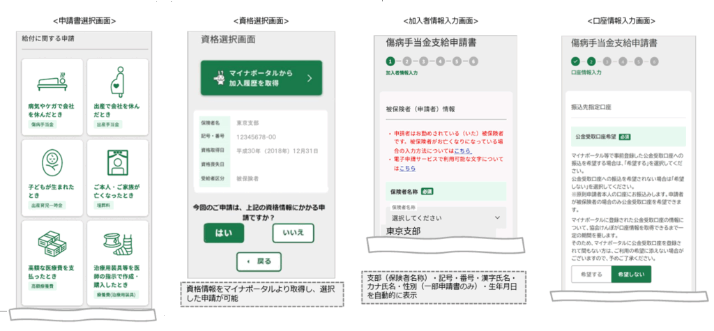資料によれば、傷病手当金や出産手当金、出産育児金、高額療養費などの申請書が対象となっています。