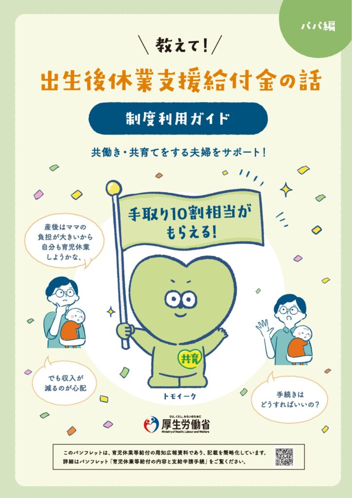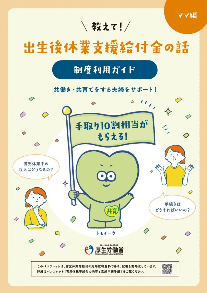 新たに創設された「出生後休業支援給付金」について、給付金の制度利用ガイド(デジタルパンフレット)がパパ編・ママ編とそれぞれ用意されているので、ぜひご活用ください。