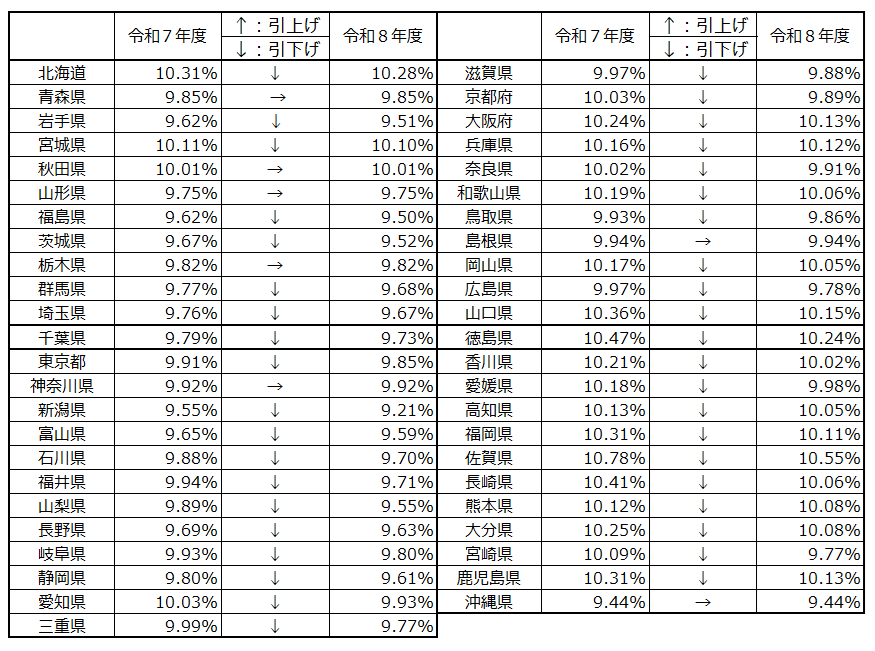 令和8年1月29日の第140回 全国健康保険協会運営委員会にて、令和8年分の健康保険料率、介護保険料率についての議事が行われ、その後協会けんぽより各支部の保険料額表が公表されました。