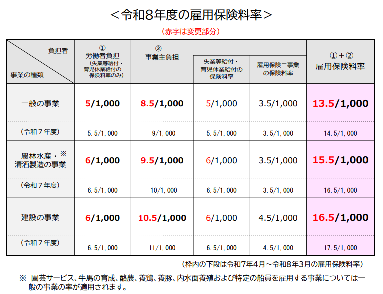 【参考URL】 厚生労働省|令和8(2026)年度 雇用保険料率のご案内